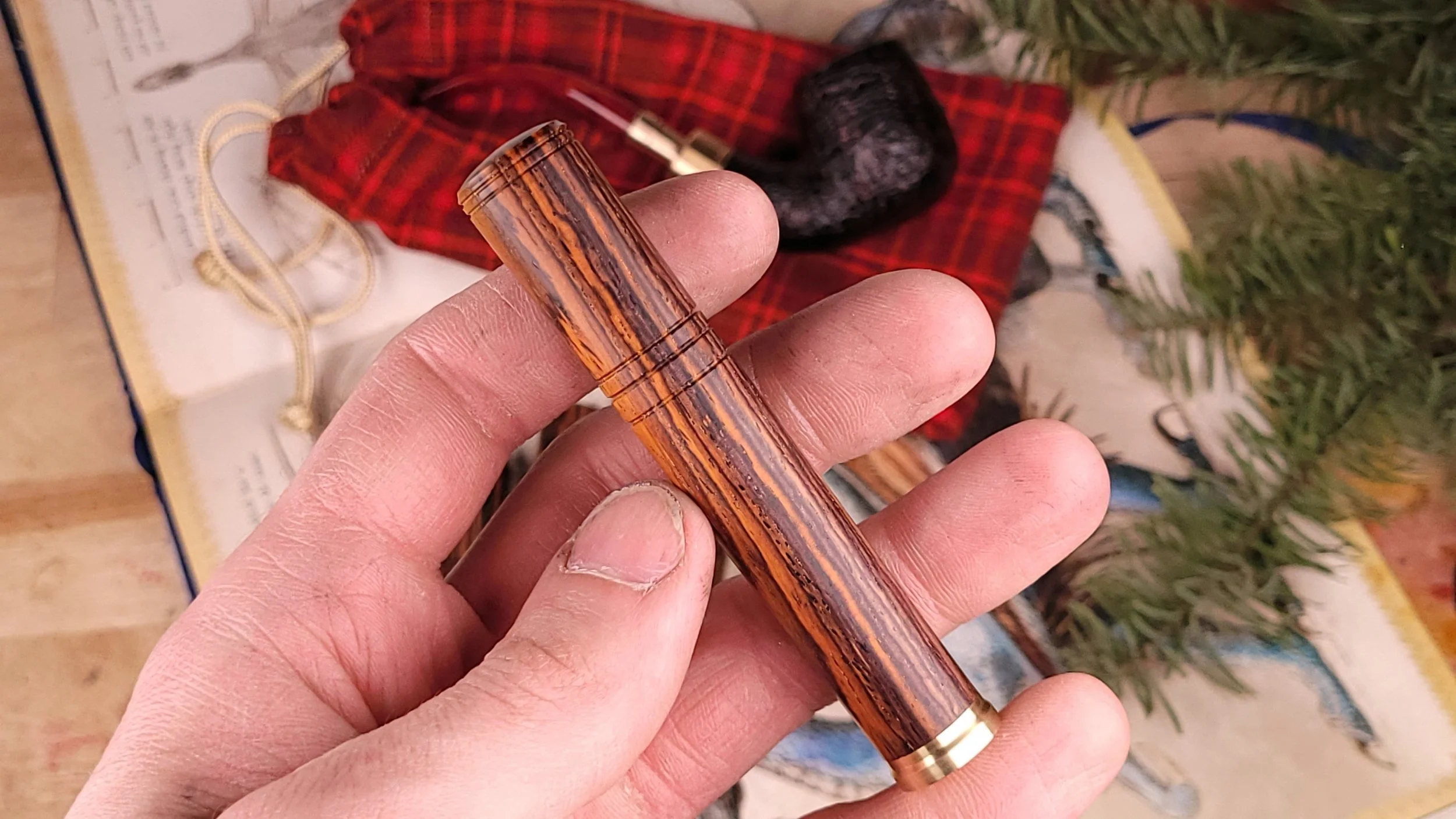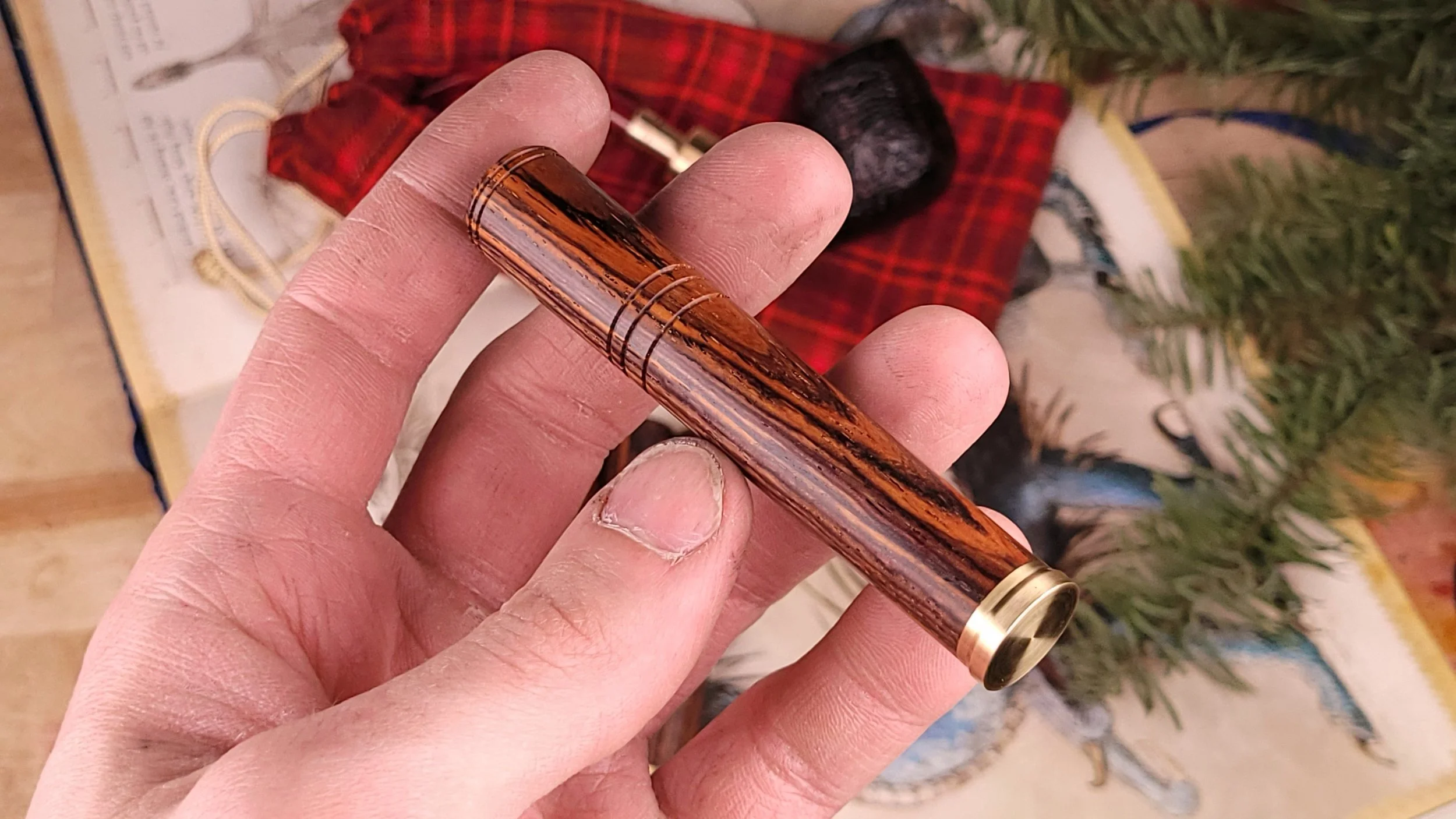 Available Pipes › Christmas Tamper #4 Image 1 of 4 Image 2 of 4 Image 3 of 4 Image 4 of 4 Christmas Tamper #4 $180.00 Cocobolo and brass magnetic tamper. Stainless steel pick. Get notified by email when this product is in stock. Purchase Added! Cocobolo and brass magnetic tamper. Stainless steel pick.