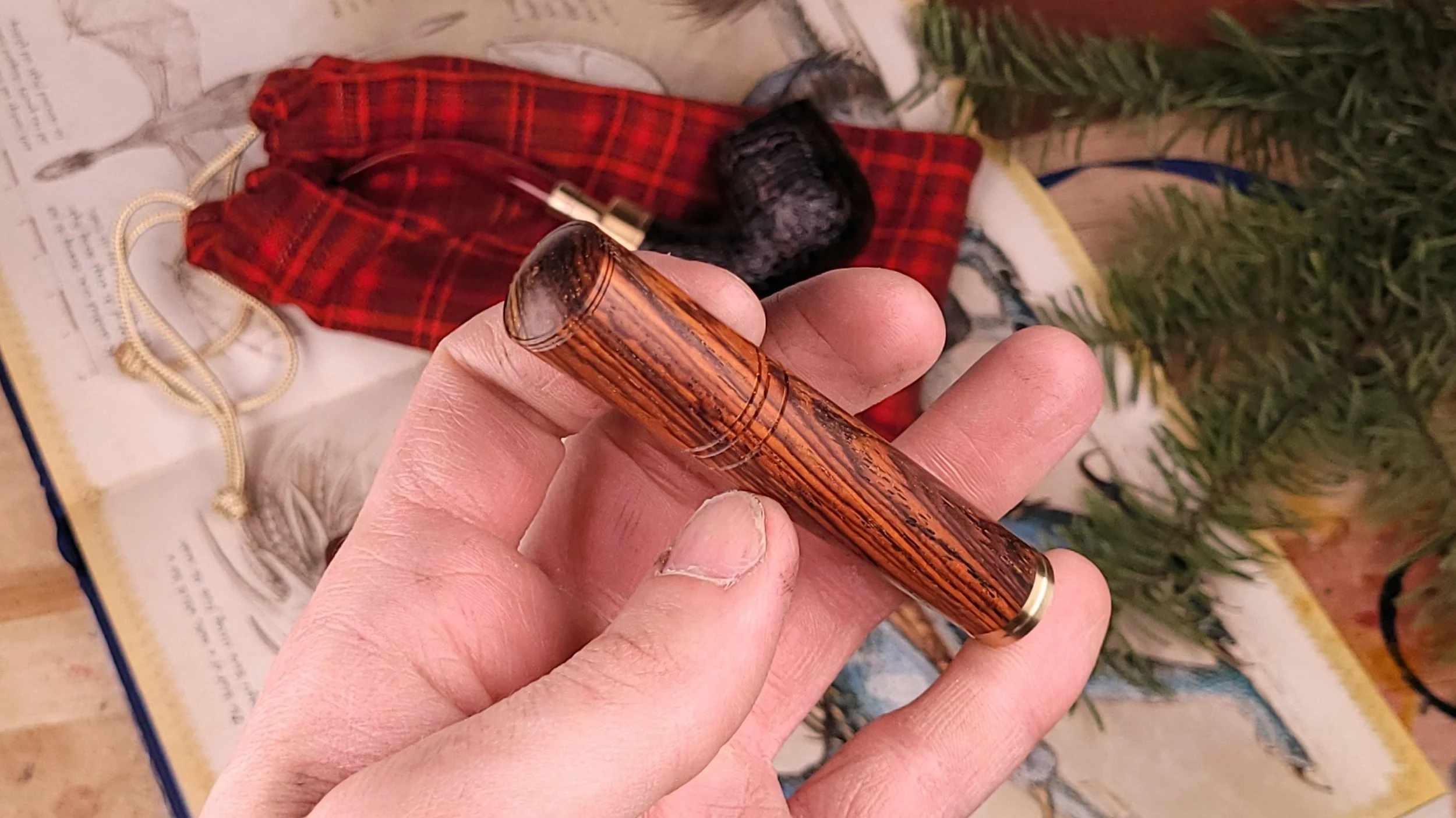 Available Pipes › Christmas Tamper #1 Image 1 of 4 Image 2 of 4 Image 3 of 4 Image 4 of 4 Christmas Tamper #1 $180.00 Cocobolo and brass magnetic tamper. Stainless steel pick. Get notified by email when this product is in stock. Purchase Added! Cocobolo and brass magnetic tamper. Stainless steel pick.